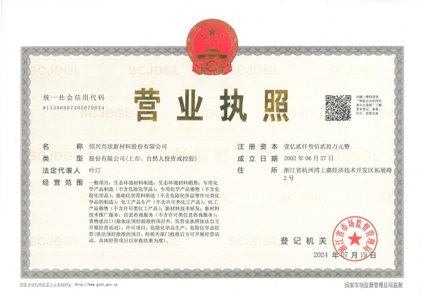紹興興欣新材料股份有限公司成立于2002年06月27日,占地面積122畝,位于杭州灣上虞經(jīng)濟(jì)技術(shù)開發(fā)區(qū)拓展路2號(hào),現(xiàn)有職工200余人,專業(yè)技術(shù)人員50余人;博士、碩士研究生30余人組成的一支知識(shí)型、專業(yè)化的技術(shù)科研團(tuán)隊(duì)。公司面向全球市場(chǎng),專業(yè)開發(fā)電子化學(xué)品、環(huán)保化學(xué)品、醫(yī)藥中間體、高分子材料等先進(jìn)新材料重點(diǎn)領(lǐng)域的省級(jí)科技型企業(yè);建有浙江上虞、安徽東至兩個(gè)生產(chǎn)基地。目前為“國家高新技術(shù)企業(yè)”、浙江省“隱形冠軍”企業(yè)、浙江省專精特新中小企業(yè);建有“省級(jí)”研究開發(fā)中心,共建天津大學(xué)浙江紹興研究院電子化學(xué)品研發(fā)中心。